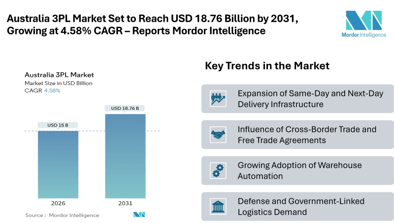 Australia 3PL Market Set to Reach USD 18.76 Billion by 2031, Growing at 4.58% CAGR – Reports Mordor Intelligence