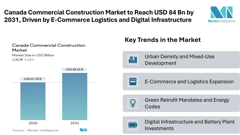 Canada Commercial Construction Market to Reach USD 84.26 Billion by 2031, Driven by E-Commerce Logistics, Green Retrofits and Digital Infrastructure