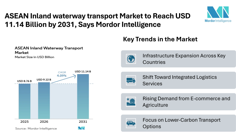 ASEAN Inland waterway transport Market to Reach USD 11.14 Billion by 2031, Says Mordor Intelligence