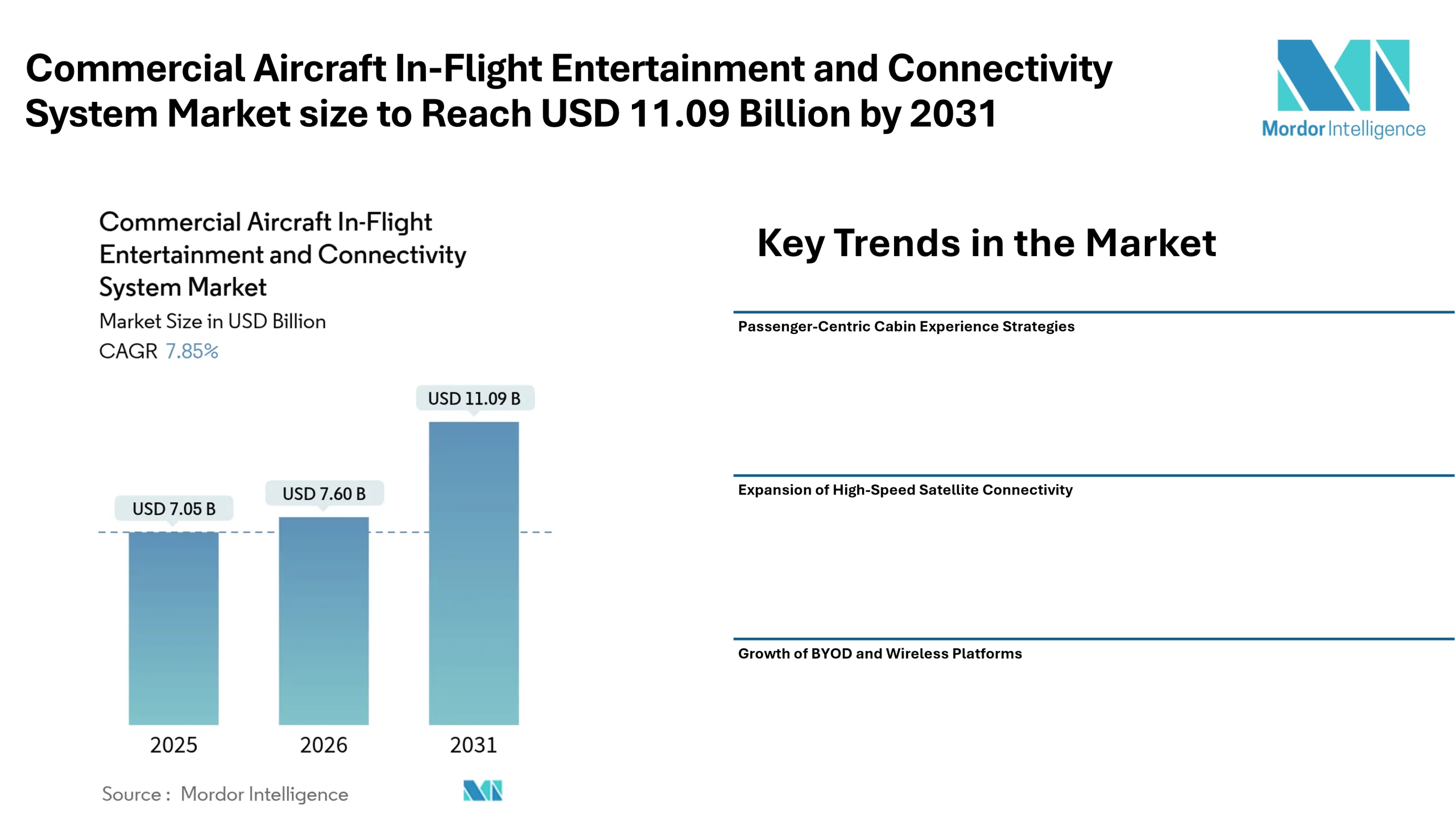 Commercial Aircraft In-Flight Entertainment and Connectivity System Market size to Reach USD 11.09 Billion by 2031 Amid Rising Demand for Broadband Connectivity and Cabin Experience Upgrades – Mordor Intelligence