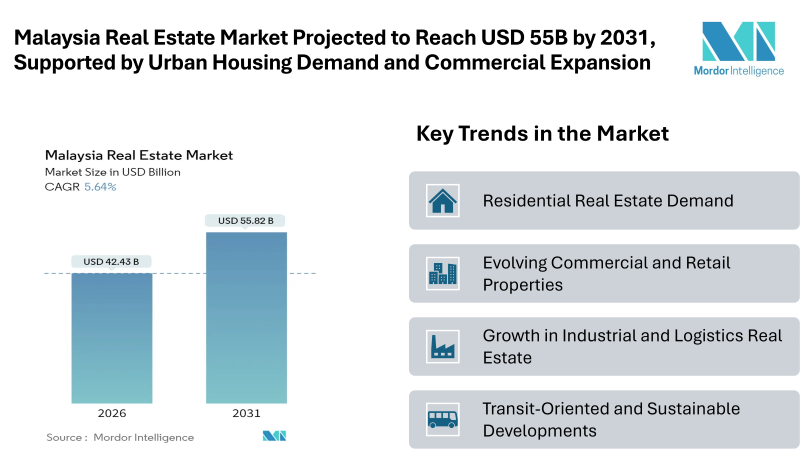 Malaysia Real Estate Market Projected to Reach USD 55.82 billion by 2031, Supported by Urban Housing Demand and Commercial Expansion